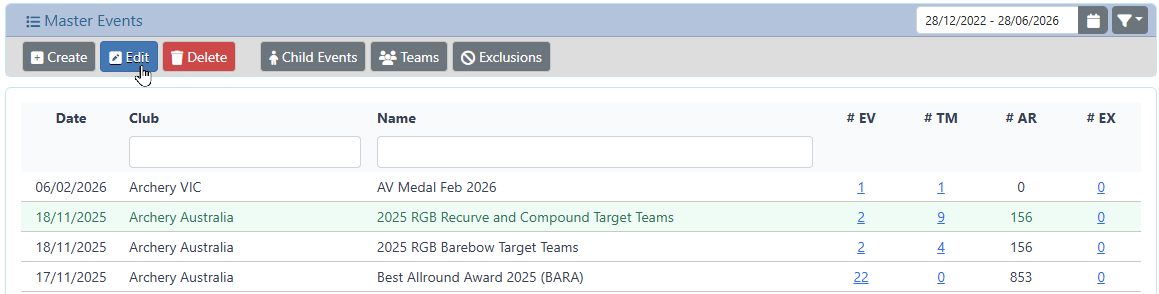 Exclude Awards: Tick this box to prevent the Archers Diary website from displaying any awards that may have been shot on the event results.