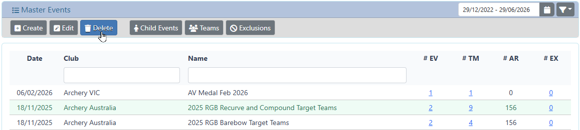 You will be prompted to confirm that you wish to delete the selected Master Event